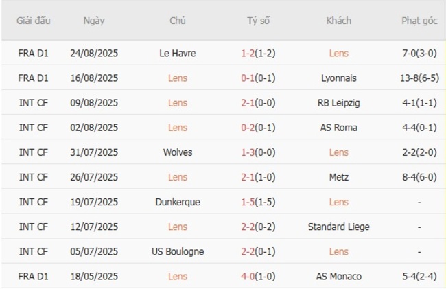 Trên đây là những nhận định và soi kèo bóng đá giữa 2 đội bóng Lens vs Stade Brestois diễn ra vào lúc 1h45 ngày 30/08/2025. Hy vọng các chuyên gia đã cho bạn lựa chọn tâm đắc nhất trong trận đấu giữa Lens vs Stade Brestois này.