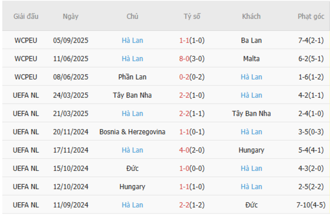 Hà Lan bước vào trận đấu này với một chút thất vọng sau trận hòa 1-1 đáng tiếc trước Ba Lan ngay trên sân nhà. Dù kiểm soát hoàn toàn thế trận, từ tỷ lệ cầm bóng vượt trội (74%) cho đến số cú sút (14 so với 6), thầy trò HLV Ronald Koeman vẫn không thể giành trọn vẹn 3 điểm. Kết quả này chỉ càng làm tăng thêm quyết tâm của Cơn lốc màu da cam trong việc tìm kiếm một chiến thắng thuyết phục.