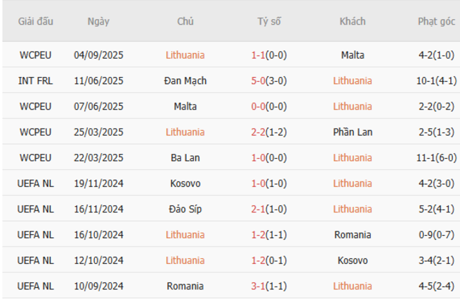 Với chuỗi 5 trận gần nhất chỉ có 3 trận hòa và 2 trận thua, phong độ của Lithuania đang khá tệ. Hàng công của đội chỉ ghi được 3 bàn, trong khi hàng thủ lại để thủng lưới tới 9 lần. Ngược lại, Hà Lan có phong độ ấn tượng hơn nhiều với 2 chiến thắng và 3 trận hòa. Sức mạnh tấn công của họ thể hiện rõ rệt khi ghi tới 16 bàn, trong khi hàng thủ chỉ để lọt lưới 6 bàn.