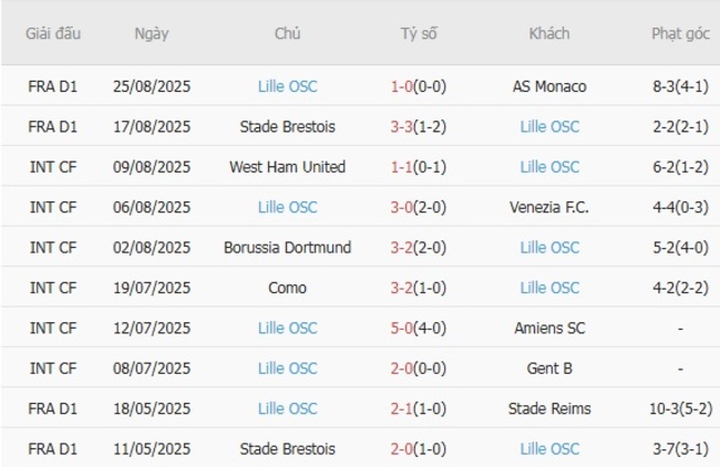 Trên đây là những nhận định và soi kèo bóng đá giữa 2 đội bóng Lorient vs Lille OSC diễn ra vào lúc 22h00 ngày 30/08/2025. Hy vọng các chuyên gia đã cho bạn lựa chọn tâm đắc nhất trong trận đấu giữa Lorient vs Lille OSC này.