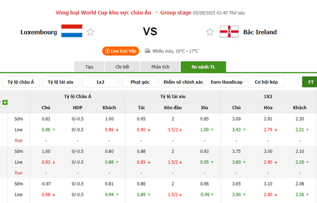 Phán đoán tỷ số - Luxembourg vs Bắc Ireland