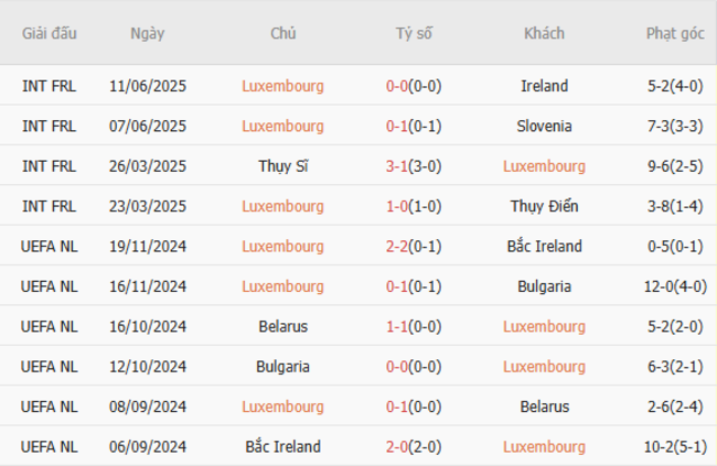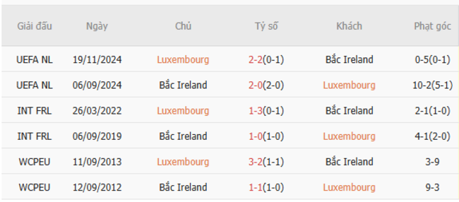 Trận hòa 2-2 với Bắc Ireland tại Nations League năm ngoái có thể mang lại chút hy vọng, nhưng lịch sử đối đầu lại nghiêng hẳn về phía đội khách với chuỗi 4 trận bất bại gần đây. Luxembourg chỉ thắng 1/7 lần chạm trán với Bắc Ireland.