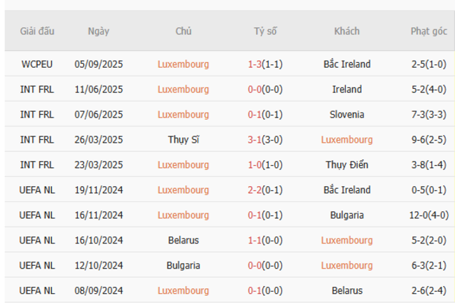 Dù có cùng thành tích 1 thắng, 1 hòa và 3 thua trong 5 trận gần nhất, phong độ của Luxembourg và Slovakia vẫn có chút khác biệt. Luxembourg ghi được 3 bàn và thủng lưới 6 bàn. Trong khi đó, Slovakia có hàng công hiệu quả hơn với 4 bàn thắng, nhưng cũng để lọt lưới 6 bàn.
