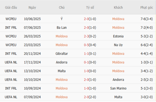 Sau ba trận thua liên tiếp và để thủng lưới 10 bàn, việc tìm kiếm điểm số đầu tiên trên con đường đến World Cup 2026 là nhiệm vụ bất khả thi của Moldova. Mặc dù đã nỗ lực hết mình, nhưng sự chênh lệch về trình độ đã khiến đoàn quân của HLV Serghei Clesceno phải nhận thất bại nặng nề trước Na Uy (0-5) và thua sát nút trước Estonia (2-3).