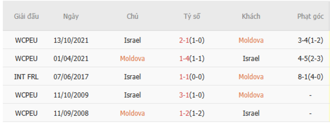 Thành tích đối đầu quá khứ giữa Moldova vs Israel