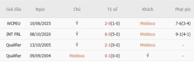 Thành tích đối đầu quá khứ giữa Moldova vs Italia