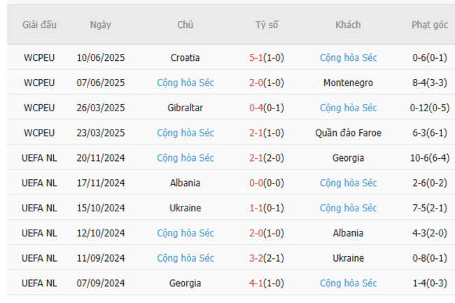 Tuy nhiên, CH Séc lại thể hiện phong độ ấn tượng hơn hẳn. Đội bóng đã giành 4 chiến thắng và chỉ để thua 1 trận. Hiệu suất ghi bàn cũng vượt trội với 11 bàn thắng, đồng thời hàng thủ chơi chắc chắn hơn khi chỉ thủng lưới 3 lần.