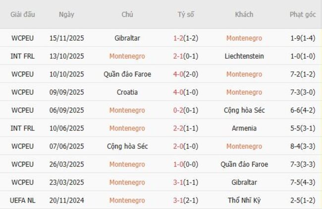 Chiến dịch vòng loại World Cup của Montenegro được đánh giá là thiếu ổn định và hàng phòng ngự yếu kém, khi đội chủ nhà hiện đang đứng thứ tư trên bảng xếp hạng. Họ đã tích lũy được chín điểm từ ba chiến thắng và bốn trận thua, nhưng hiệu số bàn thắng bại đáng lo ngại là âm tám, với sáu bàn thắng ghi được và 14 bàn thua, cho thấy những vấn đề trong phòng ngự đã nhiều lần khiến họ mất điểm.