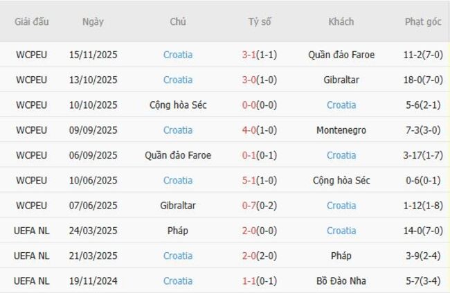 Phong độ của Croatia