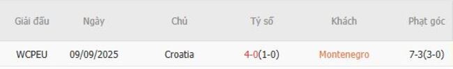 - Kết quả chung cuộc: Montenegro 1-3 Croatia
