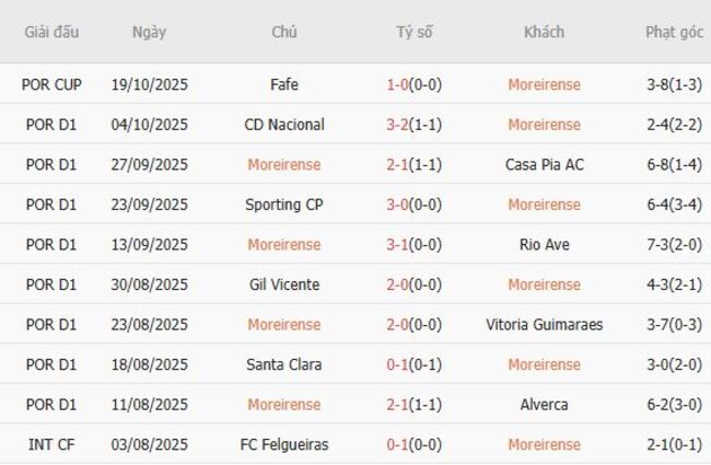 Moreirense là sự kết hợp giữa sự xuất sắc và sự yếu đuối ở hai đầu khâu khi chỉ ghi được 12 bàn trong tám trận - thành tích chỉ kém năm đội trong khi để thủng lưới 11 bàn, nhiều thứ ba trong số các đội ở nửa trên. Đội Vasco Botelho da Costa đứng thứ 5 với 15 điểm, phản ánh khởi đầu vững chắc cho mùa giải 2025-26, và là đội duy nhất chưa hòa trong mùa giải này cho thấy lối chơi tất tay của họ.