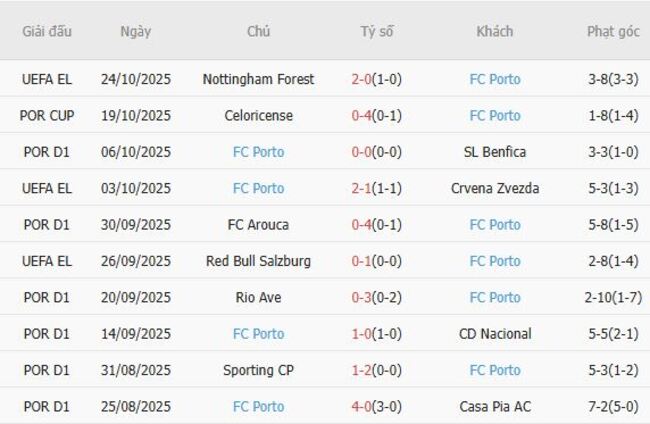 Porto bắt đầu mùa giải 2025-26 một cách đầy ấn tượng với chín chiến thắng liên tiếp trên mọi đấu trường nhưng hiện đã không thể giành chiến thắng trong hai trong ba trận gần nhất. Thất bại hôm thứ năm tại Forest đánh dấu thất bại đầu tiên của chiến dịch dưới thời Francesco Farioli - người cũng chứng kiến đội của mình để thủng lưới hai lần trong một trận đấu lần đầu tiên kể từ khi được bổ nhiệm vào tháng 7.