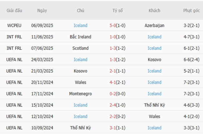 Phong độ của Iceland