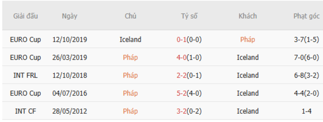 Thành tích đối đầu quá khứ giữa Pháp vs Iceland
