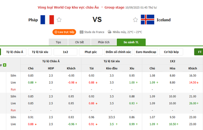 Phán đoán tỷ số - Pháp vs Iceland
