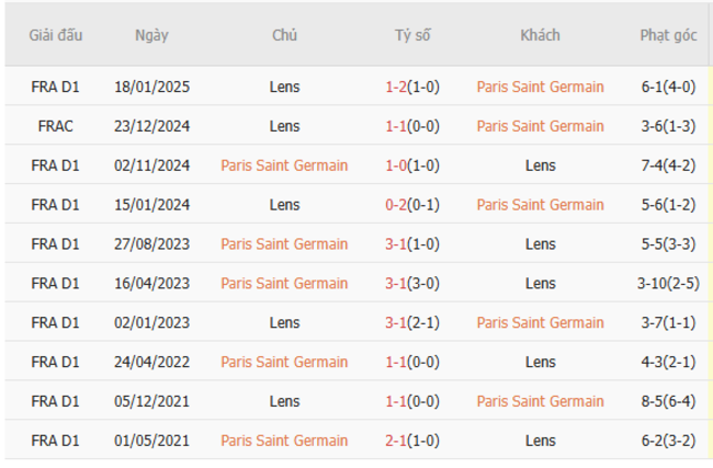 Thành tích đối đầu quá khứ giữa PSG vs Lens