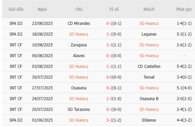 Huesca đang trình diễn một lối đá thực dụng, bất bại trong 5 trận gần nhất với 2 chiến thắng và 3 trận hòa. Hàng thủ của họ là một điểm tựa vững chắc khi chỉ để thủng lưới 3 bàn, và tất cả các trận đấu này đều kết thúc với không quá 2 bàn.