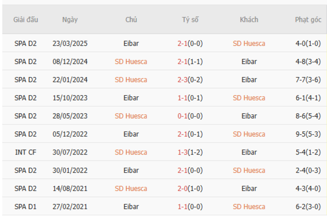 Thành tích đối đầu quá khứ giữa SD Huesca vs Eibar
