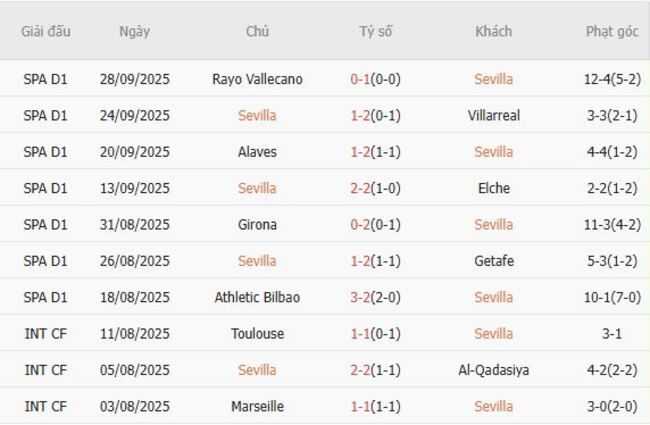 Ngược lại, Sevilla có phong độ ổn định hơn (giành 3 thắng, 1 hòa, 1 thua), ghi được 8 bàn và thủng lưới 5 lần. Tuy nhiên, khả năng tấn công của họ vẫn kém hơn hẳn so với đội khách.