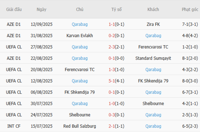 Phía bên kia chiến tuyến, Qarabag lại có một màn trình diễn khá trồi sụt. Dù hàng công thi đấu hiệu quả, nhưng việc để lọt lưới tới 6 bàn trong 5 trận gần nhất cho thấy sự thiếu ổn định về mặt phong độ.