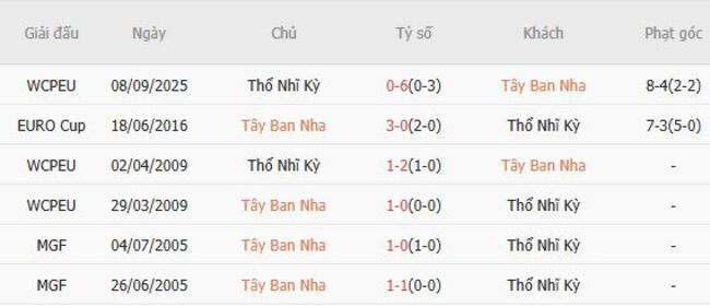 Thành tích đối đầu quá khứ giữa Tây Ban Nha vs Thổ Nhĩ Kỳ