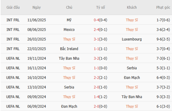 Phong độ gần đây của hai đội đang có sự chênh lệch rõ rệt. Thụy Sĩ chỉ thắng được 1 trong 5 trận gần nhất, còn lại là 3 trận hòa và 1 trận thua. Tuy nhiên, hàng công của Nati vẫn khá hiệu quả với 14 bàn thắng.