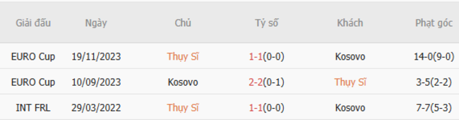 Thành tích đối đầu quá khứ giữa Thụy Sĩ vs Kosovo