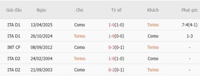 Thành tích đối đầu quá khứ giữa Torino vs Como