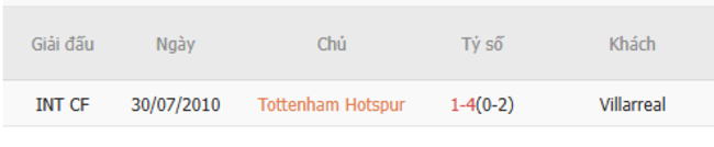 Thành tích đối đầu quá khứ giữa Tottenham Hotspur vs Villarreal