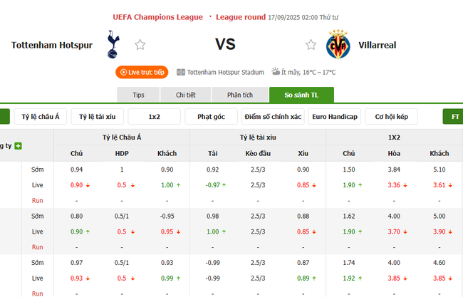 Trên đây là những nhận định và soi kèo bóng đá giữa 2 đội bóng Tottenham Hotspur vs Villarreal diễn ra vào lúc 02h00 ngày 17/09/2025. Hy vọng các chuyên gia đã cho bạn lựa chọn tâm đắc nhất trong trận đấu giữa Tottenham Hotspur vs Villarreal này.