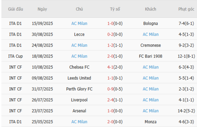 Trên đây là những nhận định và soi kèo bóng đá giữa 2 đội bóng Udinese vs AC Milan diễn ra vào lúc 01h45 ngày 21/09/2025. Hy vọng các chuyên gia đã cho bạn lựa chọn tâm đắc nhất trong trận đấu giữa Udinese vs AC Milan này.