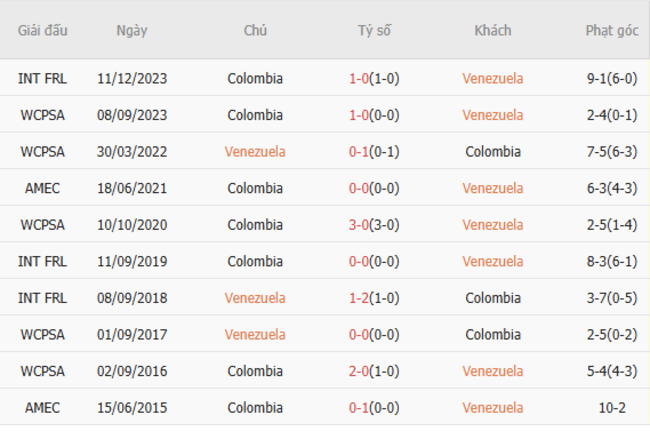 Thành tích đối đầu quá khứ giữa Venezuela vs Colombia